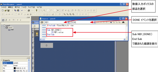 The DONE event is added to the "Numerical input box" and "Text box" Pressing the OK button on the numerical input box or the text box executes the DONE event.
