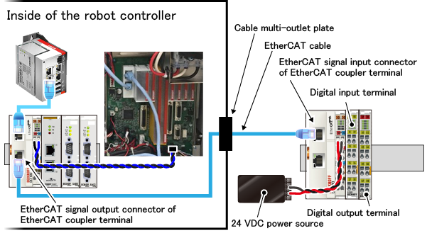 If the built-in option of the EtherCAT coupler terminal is specified when you order the robot, the robot will be shipped with the above connection completed.