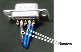 Remove already soldered wires (wirings that short-circuit No.2-No.6 pins and No.4-No.7 pins). As the soldered parts are covered with a heat shrink tube, remove the tube and then melt the soldering to remove the wires.