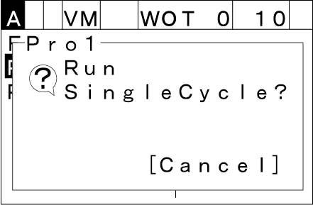 Press the [RUN] key. The following [Cycle start] window will be displayed.