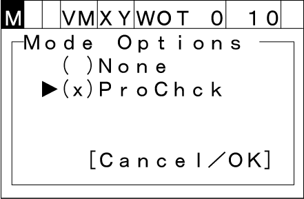 In the [Mode options] window, confirm that the check mark is displayed for [Prochck].