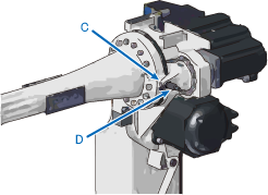 By using the smart TP, move the robot axis to the CALSET position and make the notch (C) and the notch (D) closer.