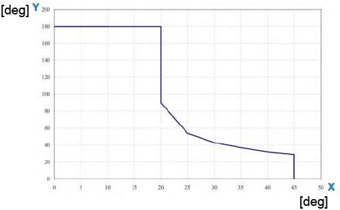 When installing the robot on the inclined plane (max. allowable inclination 45°), it is necessary to limit the 1st axis motion range according to the following diagram.
