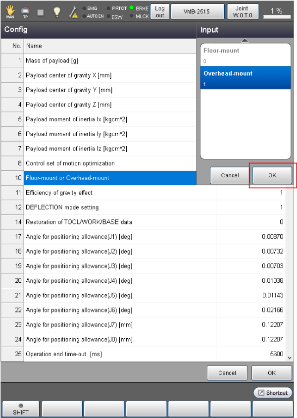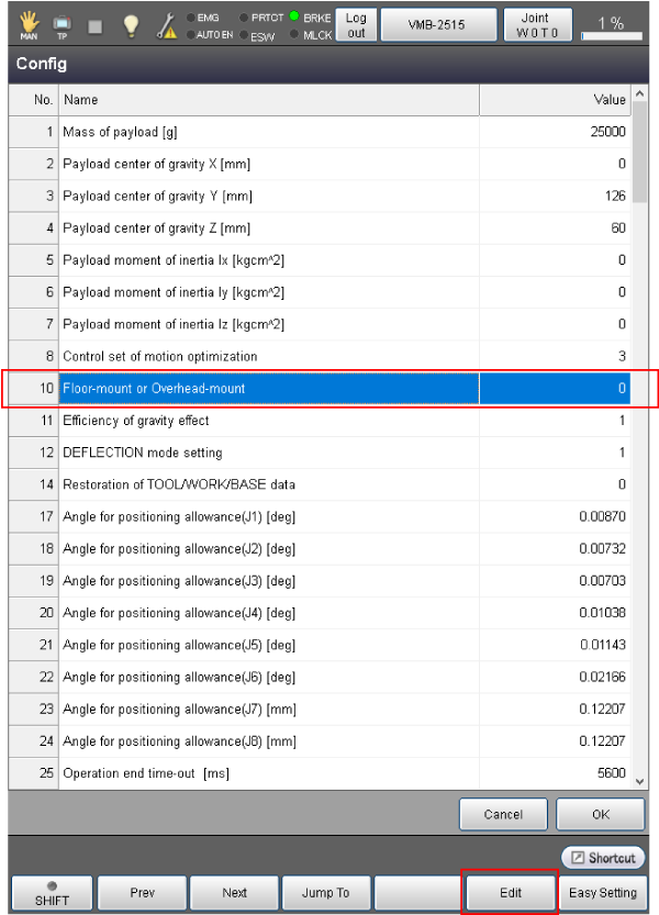 Select [Floor-mount or Overhead-mount], and press [Edit].