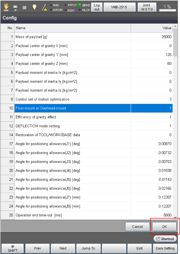 Confirm that the value is changed in the [Config] window, and press [OK].