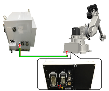 Connect the grounding wire accompanied with the motor & encoder cable set to the robot controller for grounding.