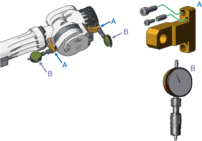 This is used in combination with a dial gauge holder that is screwed into the specific place on each robot axis.