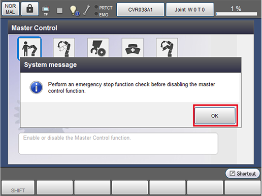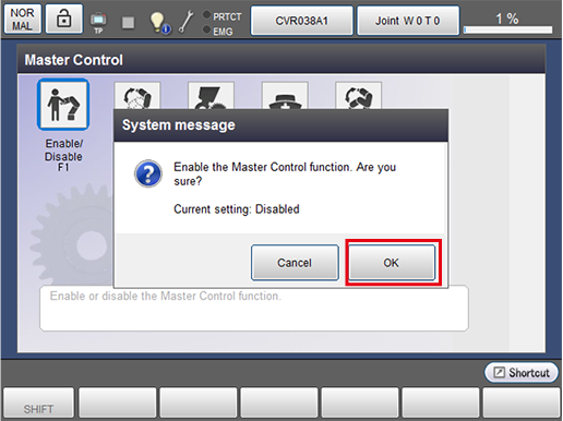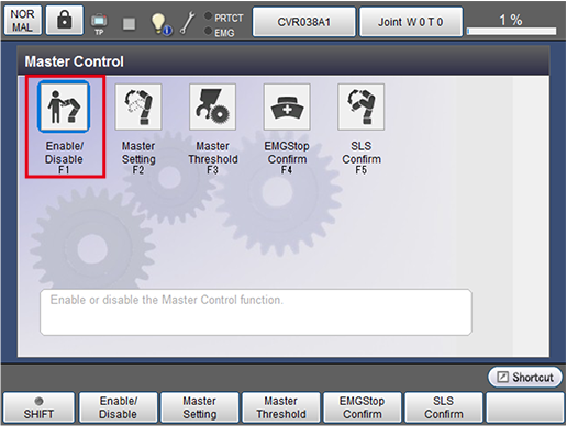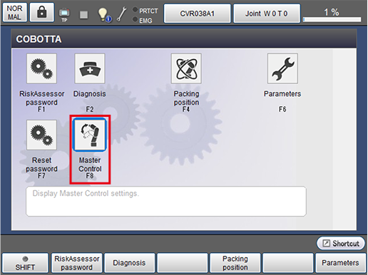Operation path: [F6 Setting] - [F10 COBOTTA] - [F8 Master Control]