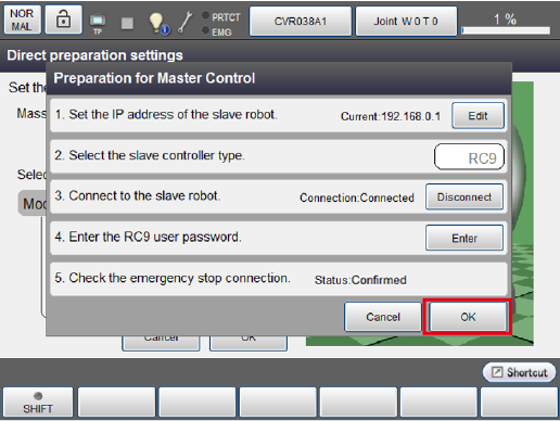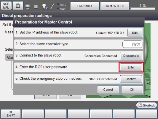 Press 1:[Edit] and enter the IP address of the slave robot.
