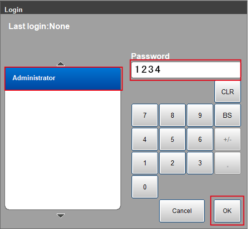 Select the default account "Administrator". Enter the password "1234", press [OK].