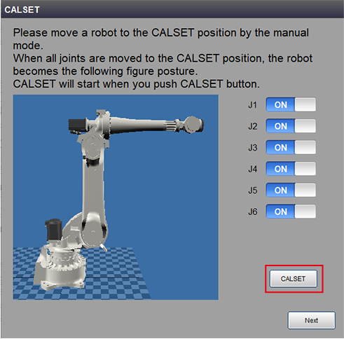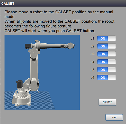 Move a robot to the CALSET position by the manual operation as shown in the figure below.