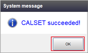 Once CALSET is completed, the CALSET succeeded window is displayed. Press [OK].