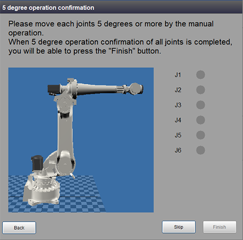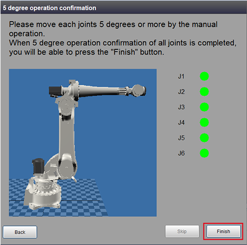 When the operation confirmation of all joints is completed, the [Finish] button will be enabled in the window.