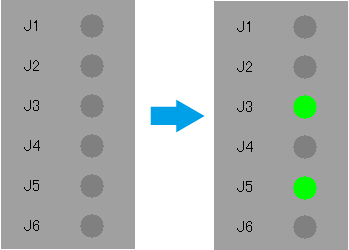 For the joint that the operation of 5 degrees or more is completed, the lamp color changes from gray to green.