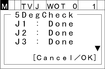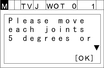 The window to check the joint that the operation confirmation is completed appears. When this window is displayed, move each robot joint by the manual operation.