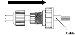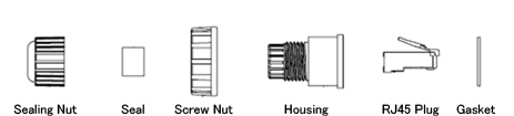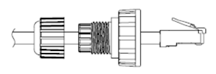 Move the RJ45 plug to the housing direction, attach a gasket to the tip and insert the RJ45 plug to the CPE.