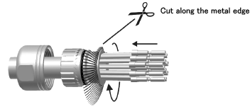 This section describes how to connect a cable to the X90 connector. Follow the steps in figures below.