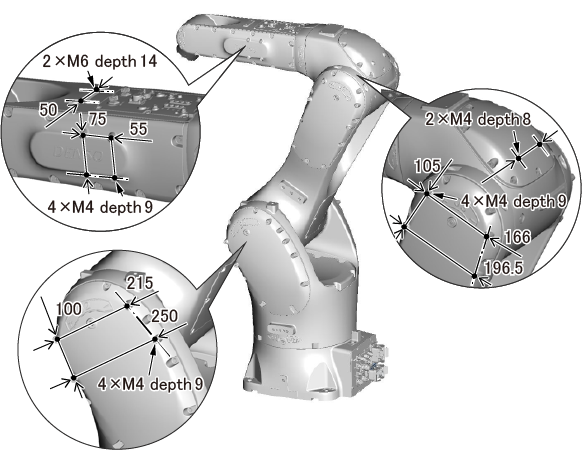 The robot unit has internal threads to secure wiring and piping to itself.