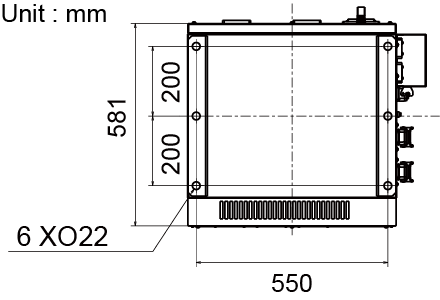 With referring to the following dimension diagram of the screw holes, perform the tapping on the floor. Use M16 bolts.