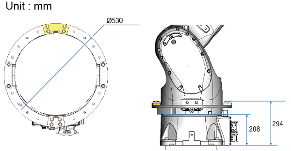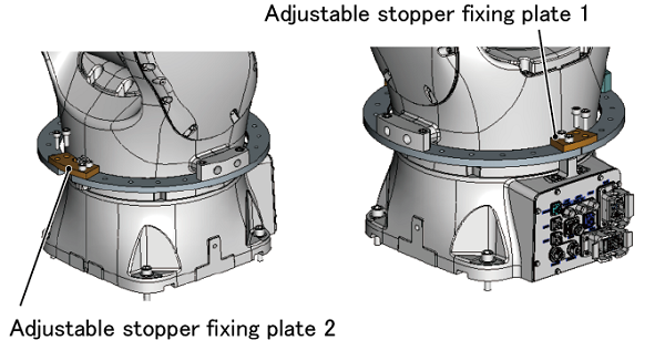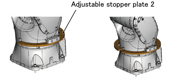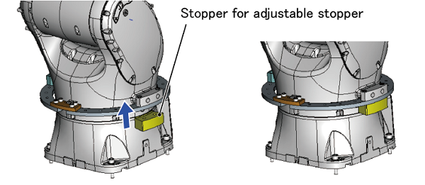 When you use adjustable mechanical stoppers (option), you can limit the stroke of the 1st axis in units of 15° in both directions.