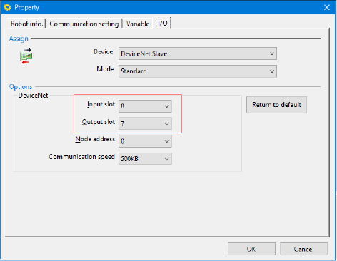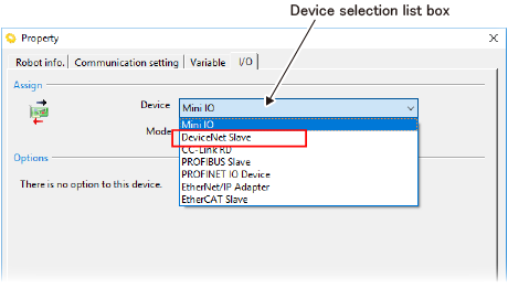 - On the [Property] window, click the [I/O] tab.