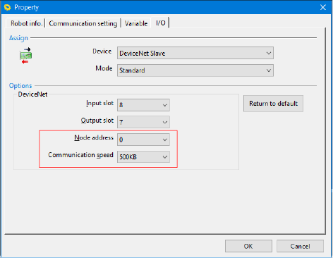 Select the node address and communication speed.