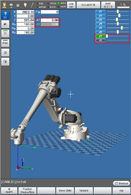 The position of an auxiliary axis appears only if the axis has been enabled in "Joint enable/disable setting".