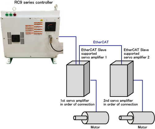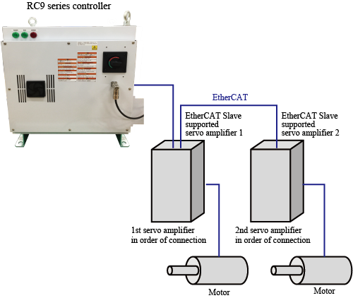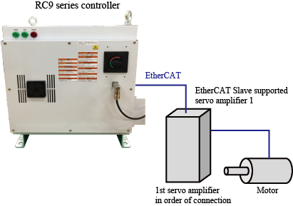 If the RC9 controller is connected to EtherCAT Slave Supported Amplifier 2 when turning on, the duplicate parameter setting causes the error "[84400A2A] EtherCAT slave device is misconnected."