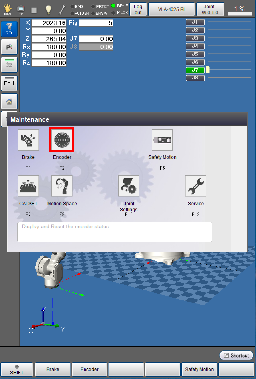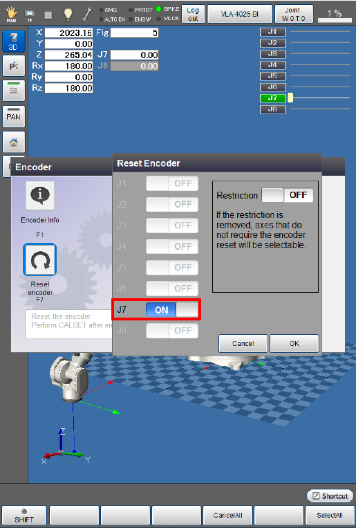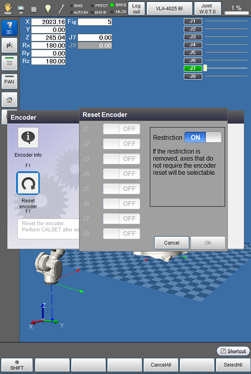 When the encoder reset is completed, [Encoder setting window] is displayed.