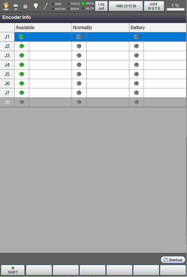 Operation path: Top screen -[F2 Arm]-[F12 Maintenance]-[F2 Encoder]-[F1 Encoder Info]
