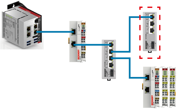 The number of junctions that can be connected to the upper part than the digital input/output terminal is limited to one, so the junction enclosed by the red square cannot be used.