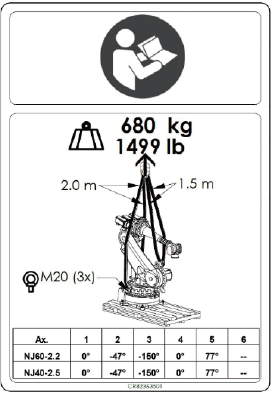 When transporting the robot unit, lift it with a crane as shown below.