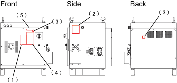 The controller has warning and caution labels pasted as shown below. They alert the user to the dangers of and precautions for the areas on which they are pasted. Be sure to observe the instructions printed on those labels.