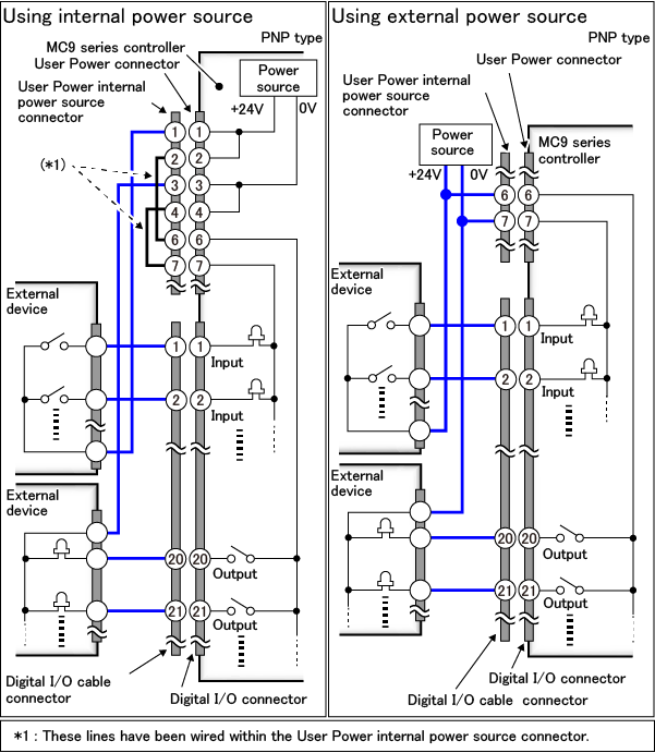Among that, a system I/O equips several signals with different functions. The combination of these signals has been determined beforehand. There are two types of combination (allocations) and the I/O wiring diagram differs depending on the combination type. For details, refer to the following link.