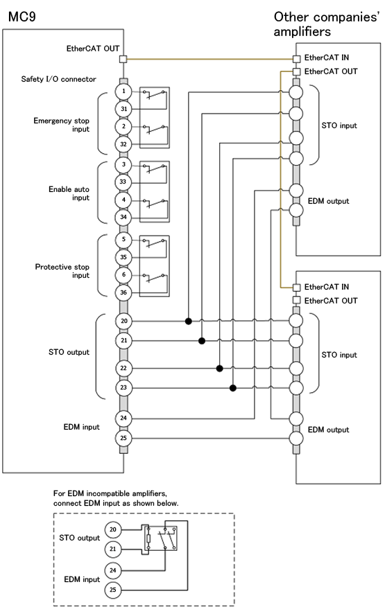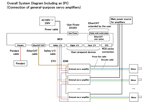 The following shows an example of system diagram for the MC9 series-compatible amplifier connection.