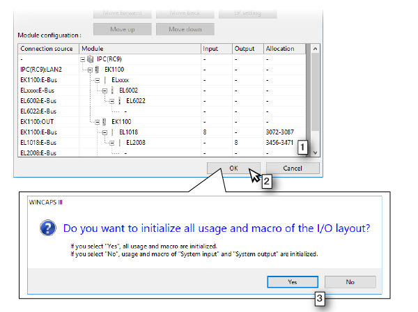 - Set the allocation of port numbers for the EL2008 This completes all connection configuration.