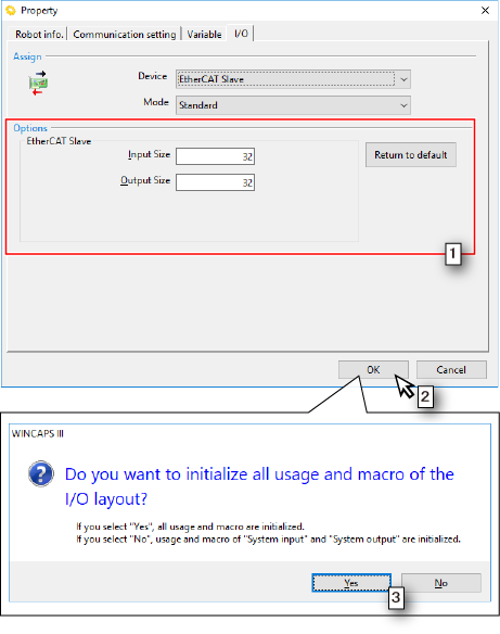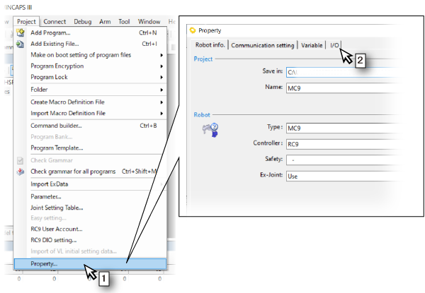 - On the [Property] window, click the [I/O] tab.