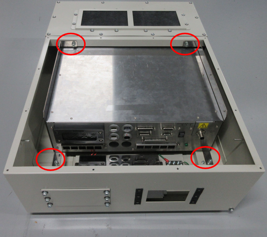 Controller support bracket L and R are temporarily installed inside of the controller protective box (MC9) at the shipment.