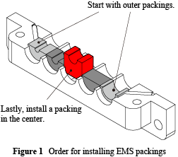 Note the following points when installing the EMS packings on the plates.