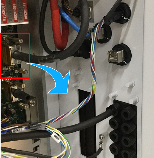 Pull the Hand I/O cable into the robot controller through the cable multi-outlet plate.
