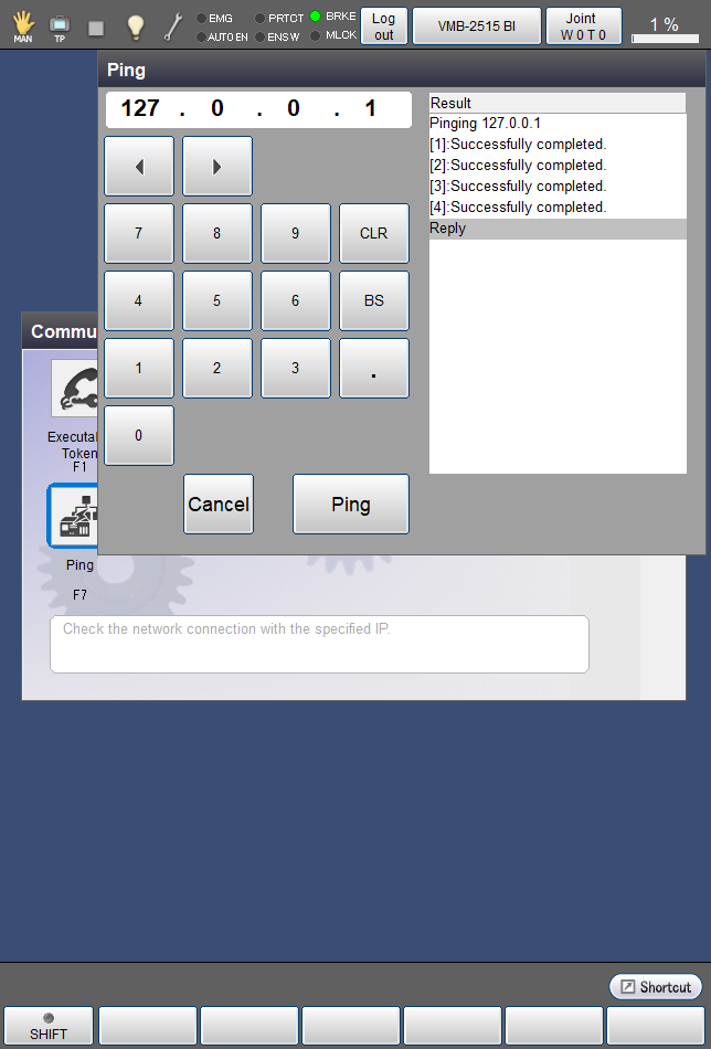 Operation path: [F6 Setting] - [F5 Communication and Token] - [F7 Ping]