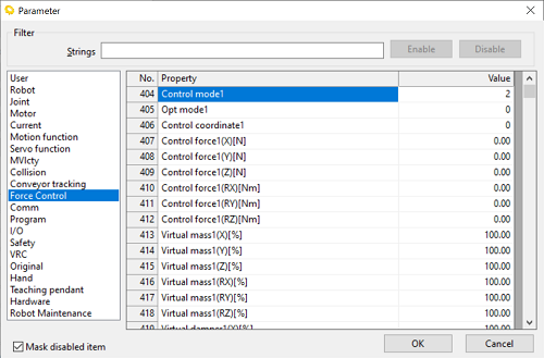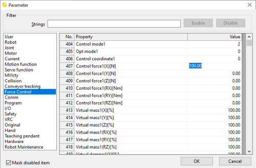 From the menu on the left side of the [Parameter] screen, select [Force Control].