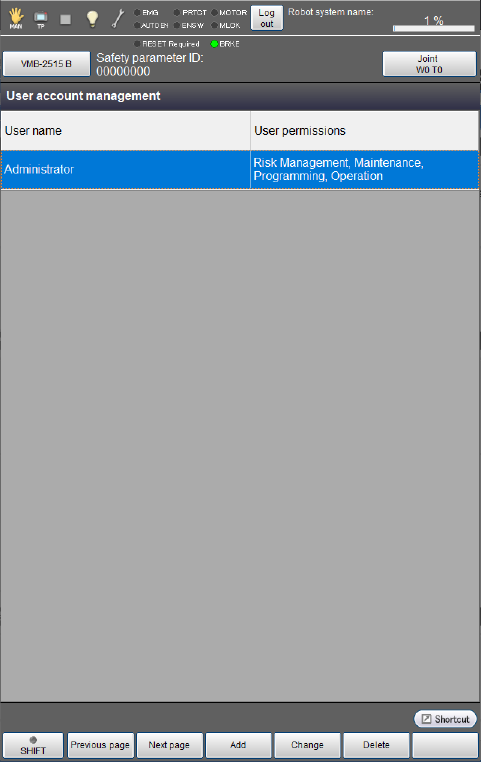 Operations available depending on the name and permission of a user permission differ between the robot controller software version "1.3.*" or higher and "1.2.*" or lower.
