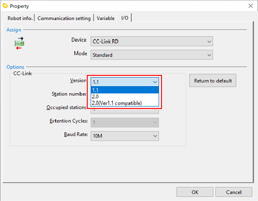 If you have added the CC-Link slave terminal to the existing robot controller, you need to change [Device].