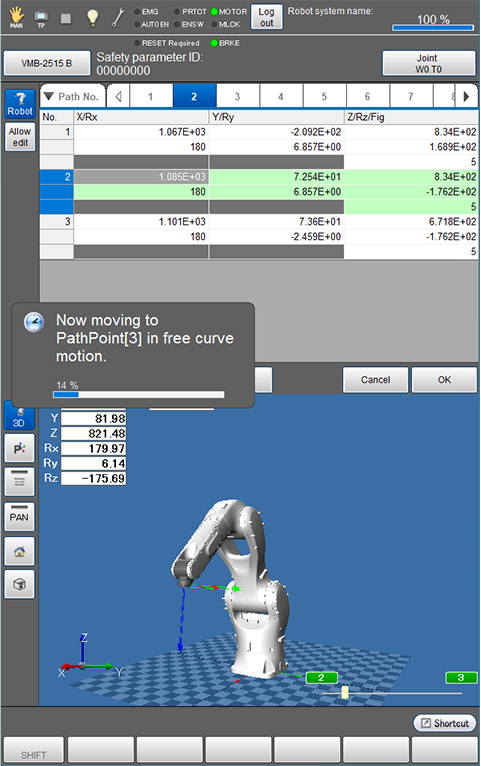 Also, it describes how to move the robot to the specified path point with PTP/CP motion, and how to move the robot on the specified path with free curve motion.