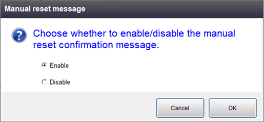Select whether to display the Manual Reset confirmation message when the enabling switch is pressed in Manual mode.