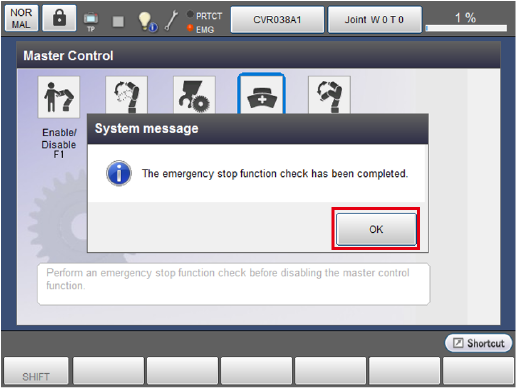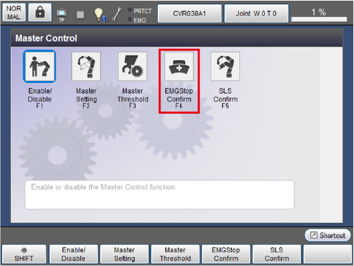 In the [Master Control] window, press [F4 EMGStop Confirm].
