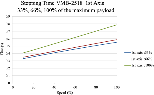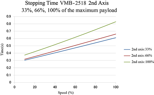 The following are the values measured when the robot operating under the following conditions is stopped using the method of Stop Category 1.