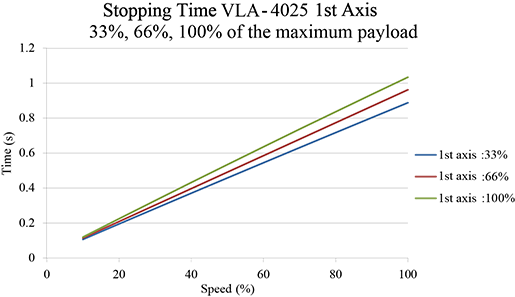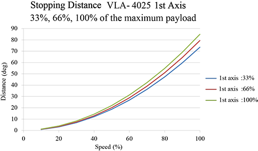 The following are the values measured when the robot operating under the following conditions is stopped using the method of Stop Category 1.