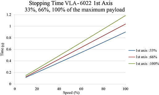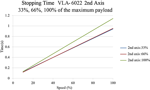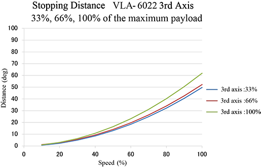 The following are the values measured when the robot operating under the following conditions is stopped using the method of Stop Category 1.